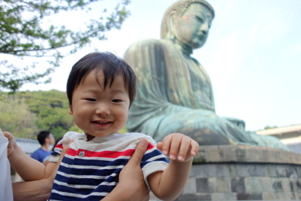 寝顔が大仏に似てます。なんとか起きて、大仏の周りを歩きます。寒くなってきたので、帰ります。
