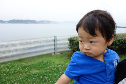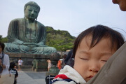 人の方が多いです。岳は爆睡です。せっかくなので、鎌倉の大仏を見に行きます。まだ爆睡の岳くん。