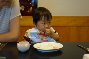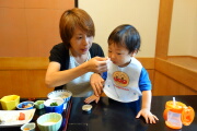 夕飯はホテルの甲羅で和懐石です。岳が大暴れです。おちつきなくあっちへ行ったりこっちへ行ったり。