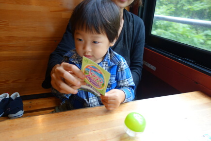 美瑛駅でノロッコ電車に乗り換えます。ラベンダーのシーズンは終わってますが岳は楽しそうです。