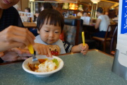 岳くんの初飛行機です。マロンをペットホテルに預けて、羽田空港のROYAL DALYでお昼御飯。