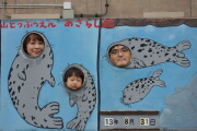 2日目はこの旅のメインイベントとなる「旭山動物園」です。ペンギンの顔出しパネルで写真を撮ります。