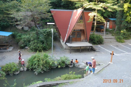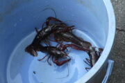 ザリガニ釣り場は、子供がおつまみのイカでザリガニを釣っている。不思議なのはザリガニがハサミで獲物を