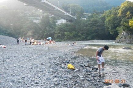 河原散策に向かいました。天気は良好。お陰で、河原に元気に遊んでいる若者があちこちにいる。