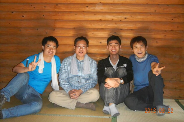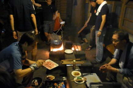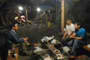 午後5時半ぐらいに、楊さんがやっと来ました。夕食開始。食べ飲みながら、山温大学の授業が始まります。