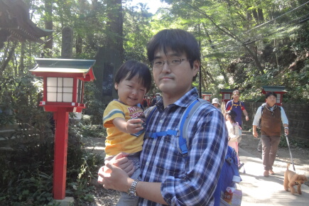 岳くんも興味深々で良い感じです。しっかし、人が多すぎるので、岳くんのペースでは歩けません。