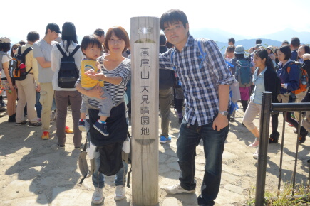 残念ながら見られませんでした。人ごみはわんさか見られましたが。山頂で写真を撮ってもらいました。