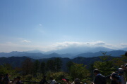 神社の階段を登り登ってようやく山頂です。山頂も激混みです。富士山が見られると思ったのですが、