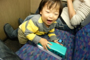 東京駅まで爆睡していた岳を無理やり起こします。駅弁はMAXじゃないけど新幹線弁当です。