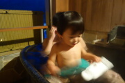 翌日は有給休暇です。朝から部屋の露天風呂に岳も入って、贅沢なひと時です。