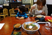 記念写真を撮っておきます(笑)。さて、チェックアウトです。ランチは駅でカレーラーメンとソースカツ丼の