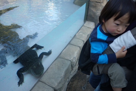 見たこともないはずなのですが「ワニ怖い、ワニ怖い」と言う岳です。本物を見せようってことにしました。