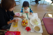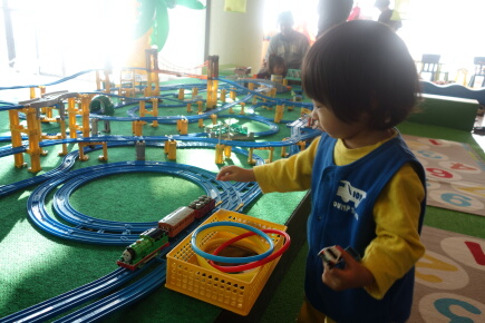 ほとんど、食べられません。一番辛いのは何も食べられない嫁さんですね。ホテルのプラレールで遊びます。