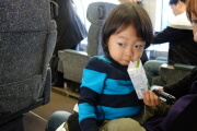 チェックアウト後は、さっさと帰ります。グリーン車しか空いて無い。岳の面倒を見てたのでほとんど座れず。