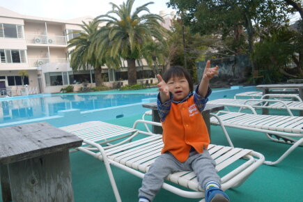 プールサイドのレストランです。プールは温水プールらしくて、水も綺麗です。誰も入っておりません。
