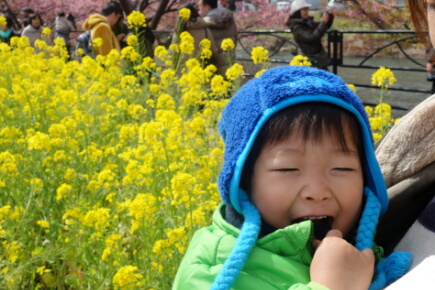 花見の弁当を食べます。岳も起きて苺を食べます。横浜で乗り換えます。駅からタクシーで家に帰ります。