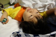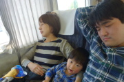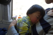 ちょっと早めなのですが、電車事故でだいぶ遅れています。30分以上待たされました。岳は眠くなってくれて、