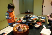 ジャングル風呂は岳が嫌がり、結局、朝風呂には入れず。朝食は部屋食ではありません。レストラン食です。