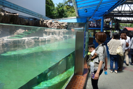 餌やりでしたが、カッパ海老せんの販売は自粛しますとのこと。意味なし。遊覧が終わって、再び、水族館へ。