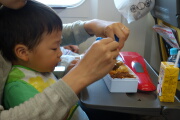 帰りのハヤブサは混んでて3人席の真ん中の前後になってしまいました。岳が寝てくれて、助かりました。