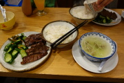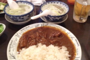 パンを食べて、ドミーインホテルに戻って夕飯です。近くに利久があったので、牛タンカレーを食べます。