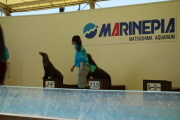 マリンピアの水族館へ。出費がでかいです。ペンギンの餌やりを見て、アシカショーを途中で抜けて、遊覧船へ。