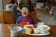 岳はリサとガスパールのパン屋のパンを食べました。さて、朝食です。ホテルのバイキングです。美味い。