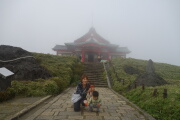 ロープウェイでスーっと行きます。そして、やったら寒いです。視界もゼロ。お昼はカレーパン。