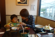 タクシーで元箱根まで行って、そばを食べました。岳は爆睡。セブンイレブンで明日の朝食を買います。