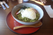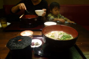 夕飯は前回の反省を活かして早めに食べます。嵐山うどん「おづる」で鴨うどんセットを食べました。