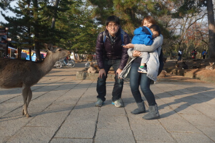 鹿煎餅を鹿にあげると「こらー、お父さん食べないで!」と泣きます。本当に怖いみたいで逃げ回ります。