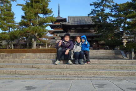 食後は法隆寺で初詣をします。正月のお寺は神社と違い、人が少なくてのんびり過ごせます。