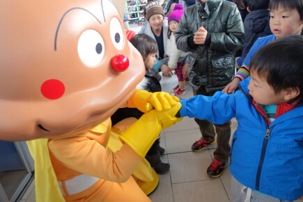 岳は「大きくなったらカレーパンマンになります。」と言っています。ついに握手ができました。