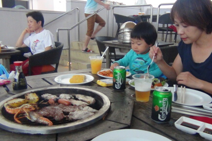 ホテルのBBQディナーショー。ファイアーダンスです。岳は真面目な顔で拍手しながら観てました(笑)。