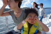 バスに揺られて、ヨットに乗り換えます。ヨットは往復1時間だけです。イルカが見られる確率は90%。