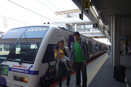 予約した指摘席は赤ちゃんマン号でしたが、岳はカレーパンマン号が良いと泣くのでした。