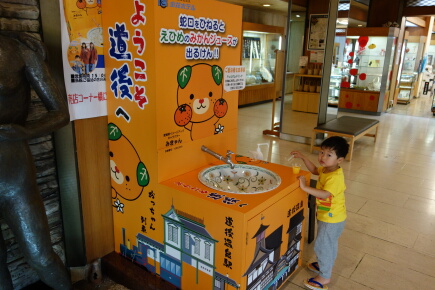 松山駅から坊ちゃん列車で道後温泉へ行きます。本日の宿が一番苦労しました。直前に部屋食可能の電話を