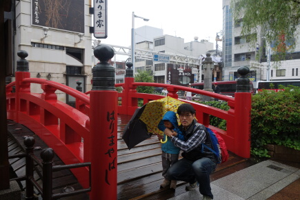 雨の中、日本三大ガッカリの1つ、はりまや橋で写真を撮って、ホテルに戻って食べます。