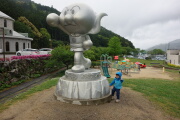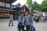食事の前に道後温泉街をブラブラ散歩します。温泉は行列です。ホテルの温泉に岳と一緒に入ります。