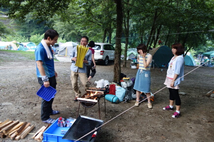 さて、参加者は男女6名。男性陣は新松田駅から王さんの車でキャンプ場へ向かいます。