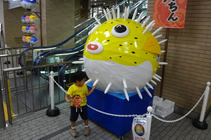 3日目です。旅館の食事に焼ふぐがついてました。本日は海響館という水族館へ遊びに行きます。