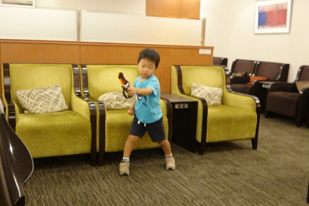 ラウンジでポーズして格好つけます。ラウンジは同伴者一人までなので、4000マイルも使っちゃいました。