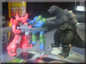 今年度から「エッセイ」のコーナーに挿し絵を入れました。ファンの方(?)から、写真が入るといいというご意見が来たからです。でもなかなか受け狙いの写真はとれないよ。というわけで、5月1日のエッセイは見てくれました?シリアスな話をしたので挿し絵に困った困った。結局、前回、エッセイの答え。エッセイ中に書くとしらけるので、ここに書きます。やっぱ、ちゃんとした絵にした方が良かったよなぁ。で、今回の写真は子供の日ということで・・・。友人から受け継いだガンダム。ハナハイムで作られたものです(ウソ)。GWです。ガンダムウィングではありません。それと、5月だけに5じら(さぶ)。とりあえず、どんな状態なのか想像してください。「旧ザク:わたしのために喧嘩はやめて〜」('01/05)。